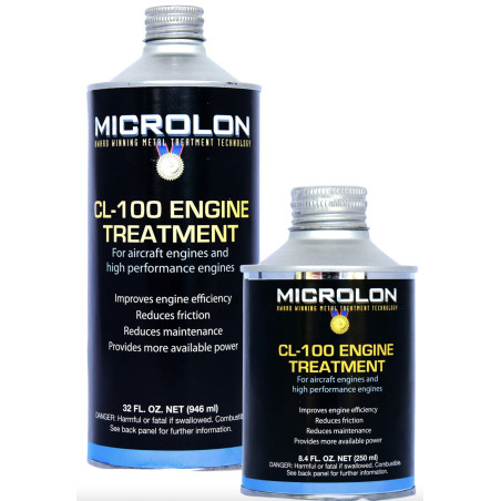 Microlon est un traitement métallique révolutionnaire et unique qui élimine pratiquement le frottement dans tous les moteurs à combustion interne, ce qui améliore les performances (puissance), réduit l'usure et prolonge la durée de vie du moteur. Il réduit également la consommation de carburant et d'huile, ainsi que les températures de fonctionnement. Microlon imprègne les surfaces des paliers du moteur, formant un film lubrifiant sec qui dure quel que soit le nombre de vidanges d'huile. Les moteurs Continental A-65, C-85 et C-90 utilisent le demi-kit présenté ci-dessous. La plupart des moteurs Lycoming et Continental utilisés dans les avions légers utilisent le kit simple. Les moteurs turbocompressés et radiaux utilisent de 2 à 6 kits simples. Appelez pour plus de détails si vous avez des questions sur la quantité de Microlon nécessaire à votre application. Des kits Microlon sont également disponibles pour les voitures, les bus, les camions, les motos, les bateaux et les équipements industriels.